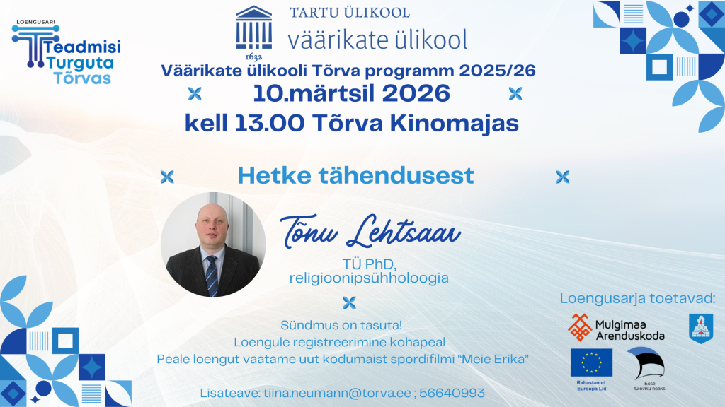 Loengut on pidamas religiooni- ja suhtlemispsühholoog Tõnu Lehtsaar teemal “Hetke tähendusest”. Peale loengut tuleb vaatamisele uus spordifilm „Meie Erika“.